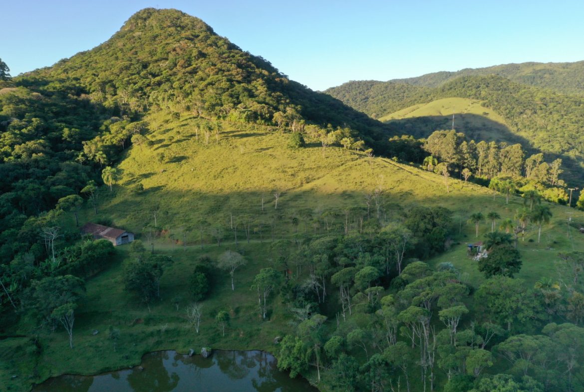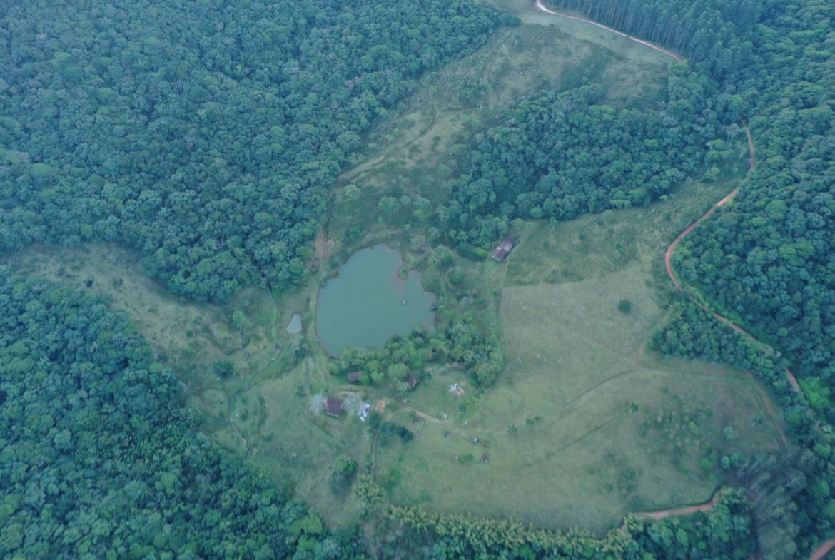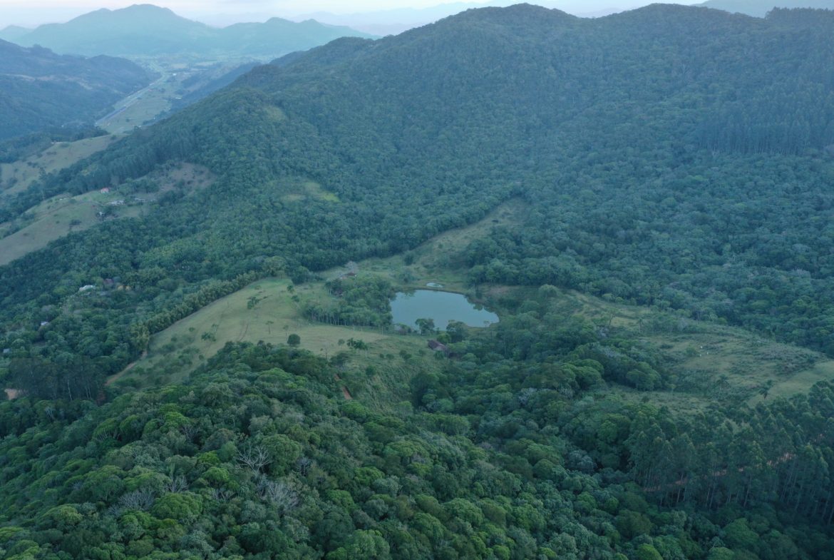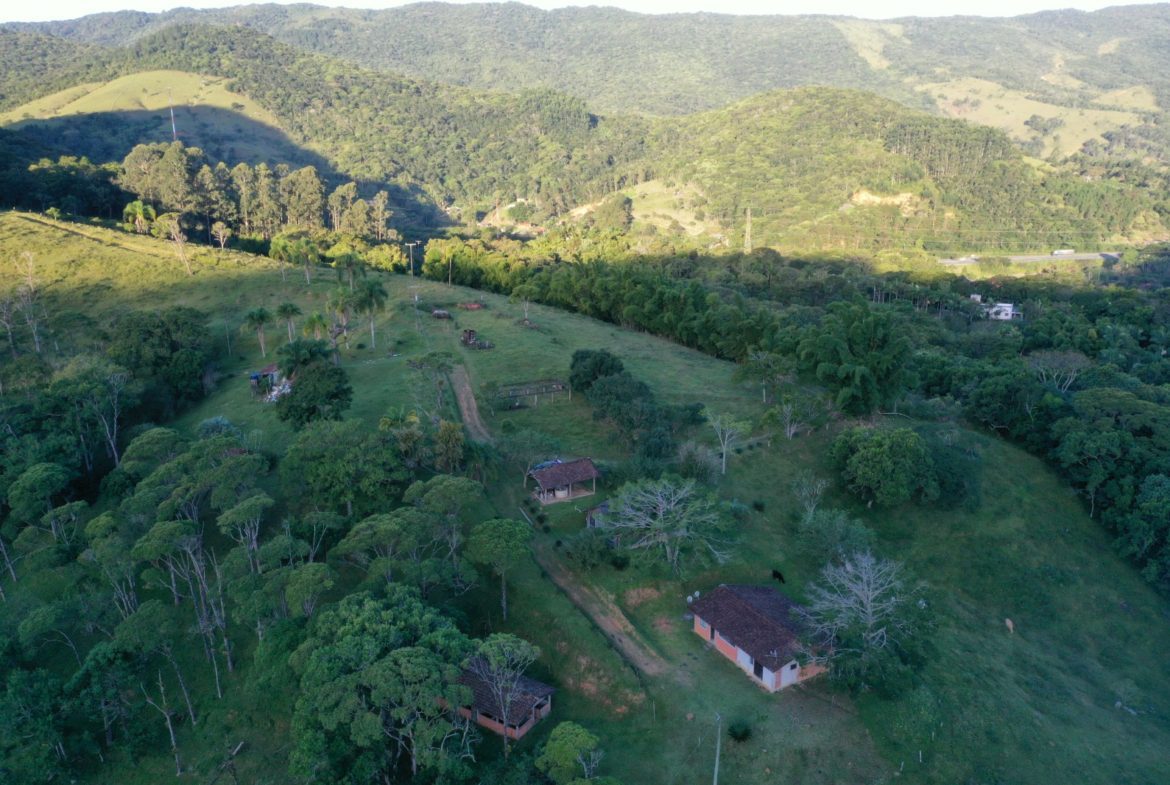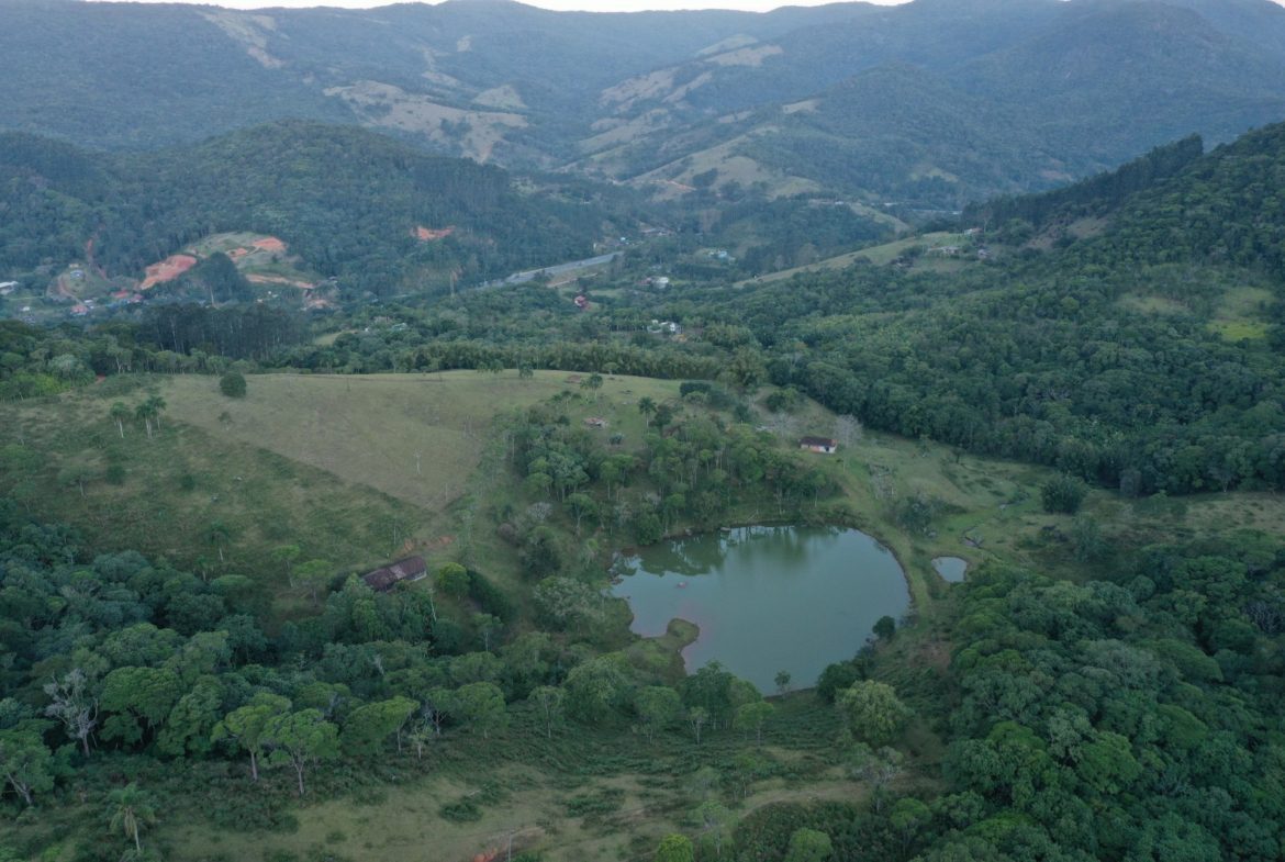 Na propriedade há bastante vegetação preservada, nascentes, cachoeiras e lagos.
